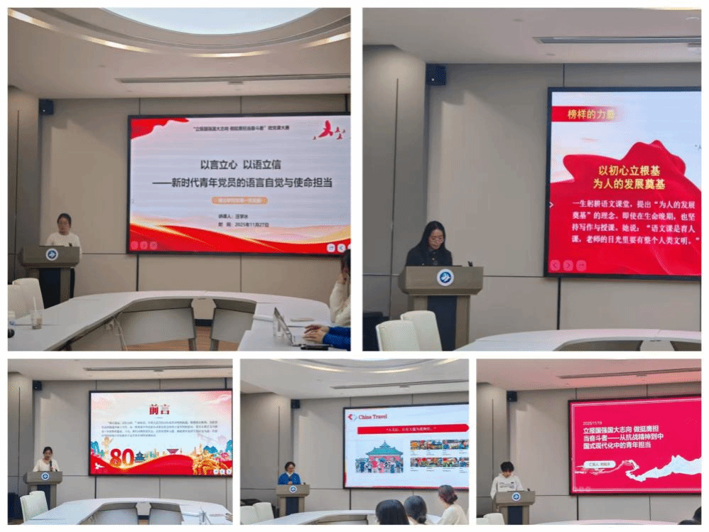 为深化学生党支部书记能力培养,发挥好学生党支部书记的“领头雁”作用,学院举办学生党支部书记微党课大练兵暨微党课大赛院级评选活动。5名学生党支部书记紧扣时代主题,充分发挥学科特色,分别围绕“以言立心,以语立信——新时代青年党员的语言自觉与使命担当”、“弘扬教育家精神,争做新时代大先生”、“传承抗战精神 开创美好未来”、“中国共产党的人民性与责任性”、“立报国强国大志向,做挺膺担当奋斗者——从抗战精神到中国式现代化中的青年担当”等主题,聚焦党的创新理论及新时代青年的责任使命,将宏大的理论主题转化为一堂堂生动鲜活、富有感染力的微党课,不仅有效锤炼了支部书记的理论素养与思想引领能力,也激励广大学生党员自觉用党的创新理论武装头脑,切实把学习成果转化为立志成才、担当重任的强大动力。