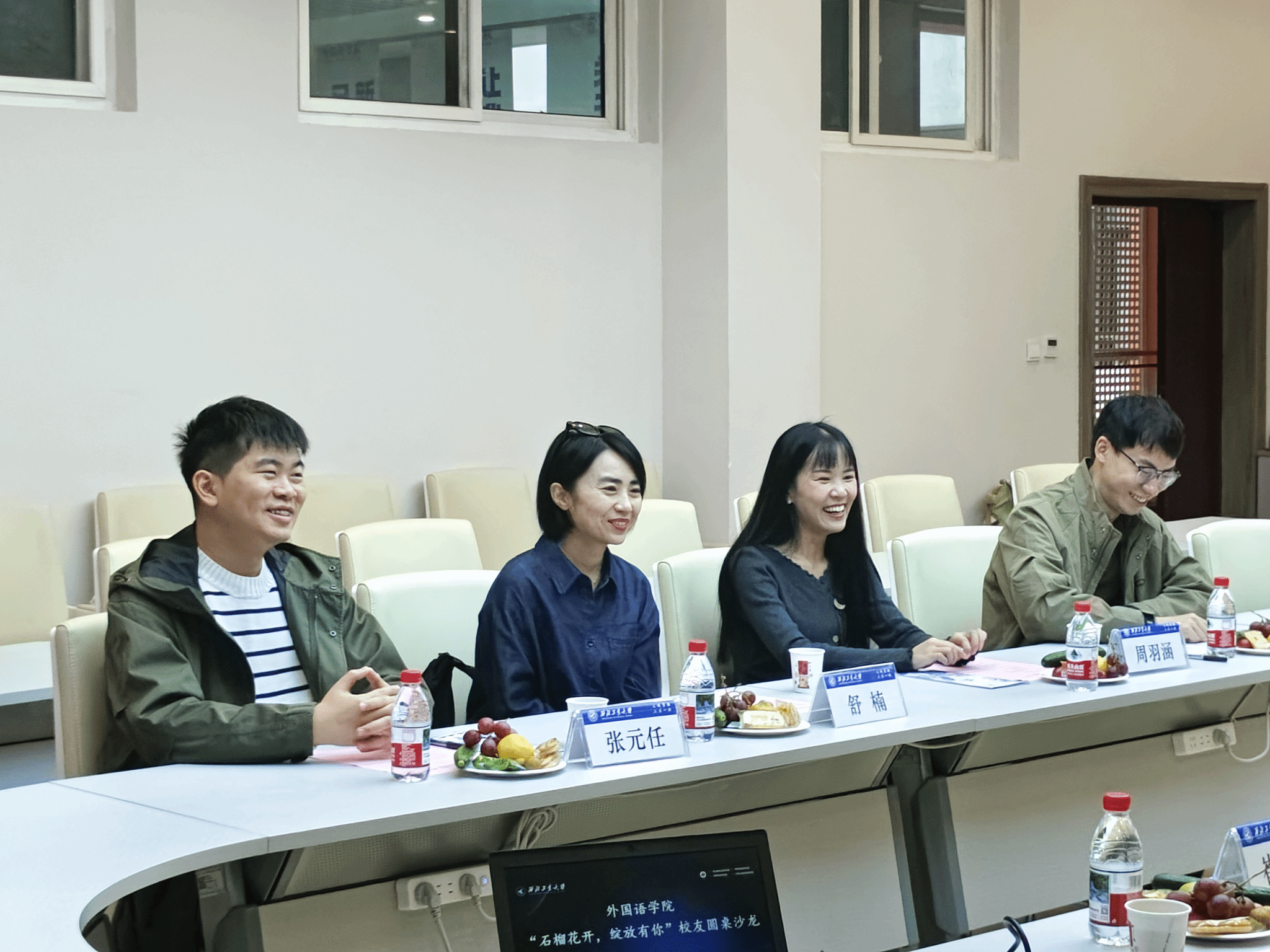时值我校建校八十七周年,为传承弘扬“总师育人文化”,凝聚校友力量,共话学院发展,外国语学院于10月7日上午在学院楼204会议室举办“石榴花开,绽放有你”校友圆桌沙龙。学院党委副书记张桑桑、导师代表薛红果、辅导员赵青、校友联络员崔孝彬及返校校友代表参与了本次沙龙。本次活动旨在搭建一个亲切、深入的交流平台,让校友与学院师生共庆华诞、共叙情谊、共绘蓝图。