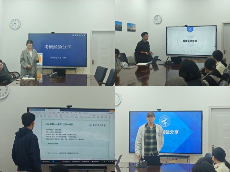 10月16日,在“蒲公英职航计划”辅导员工作室的指导下,学院“语翼知行中心”在219会议室开展“考研加油站”主题活动。辅导员赵青邀请四位研究生新生分享升学备考经验,并启动结对帮扶机制,为有升学意向的大四本科生答疑解惑、精准护航。