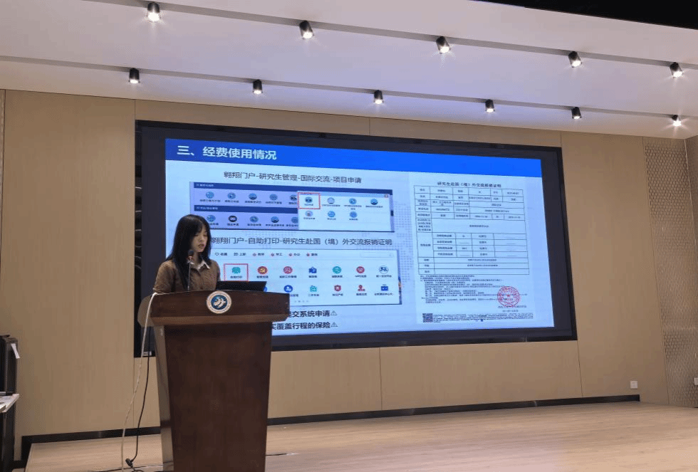 活动伊始,袁冰洁、李塞楠两位同学率先分享了她们在约旦拜勒加应用大学的短期访学经历。袁冰洁从项目概况、主要目标、数据收集过程及文化体验等方面进行了详尽讲解。李塞楠则从前期准备、科研计划、访学过程与心得建议等方面进行了系统分享,清晰地介绍了访学项目的申请流程与学术安排。