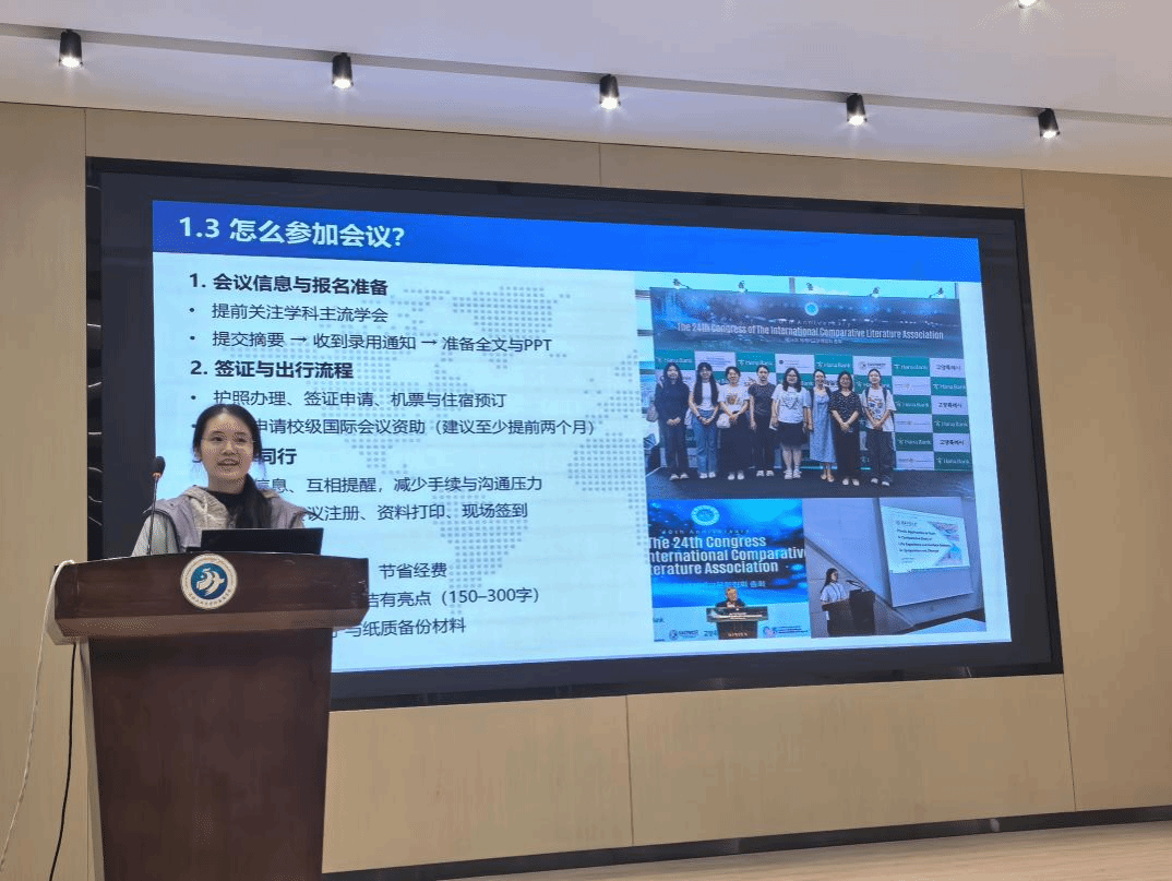最后,学院对学校研究生赴国(境)外交流资助政策进行了详细说明,就国际交流申请条件及研究生教育系统手续办理流程等进行了梳理,强调国际交流对提升学术视野与综合竞争力的重要意义。接着,学院开展了第15届语言、文学和语言学国际会议行前培训。