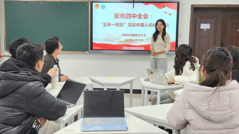 为深入学习领会党的二十届四中全会精神,引导研究生同学准确把握其核心要义与思想内涵,12月18日下午,外国语学院研究生会在学生成长发展中心组织开展了主题知识问答学习活动。本次活动以“互动问答+集体研讨”的形式开展,旨在通过轻松活泼的方式深化理论认知、凝聚思想共识。